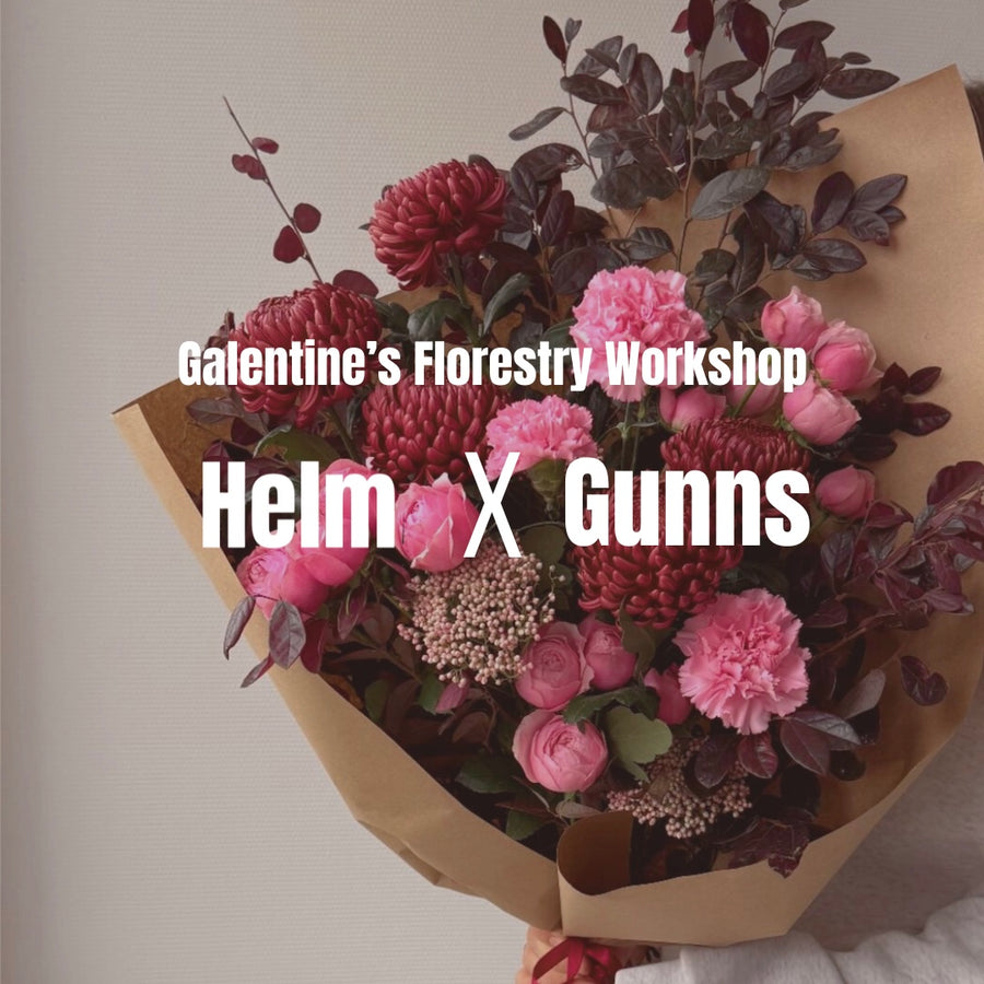 Welcome to the Gunns X Helm Galentine's Floristry Workshop happening at Helm Gallery! Join us on February 7, 2026 from 6:30-9:30PM for a fun evening of floral arrangements and creativity.