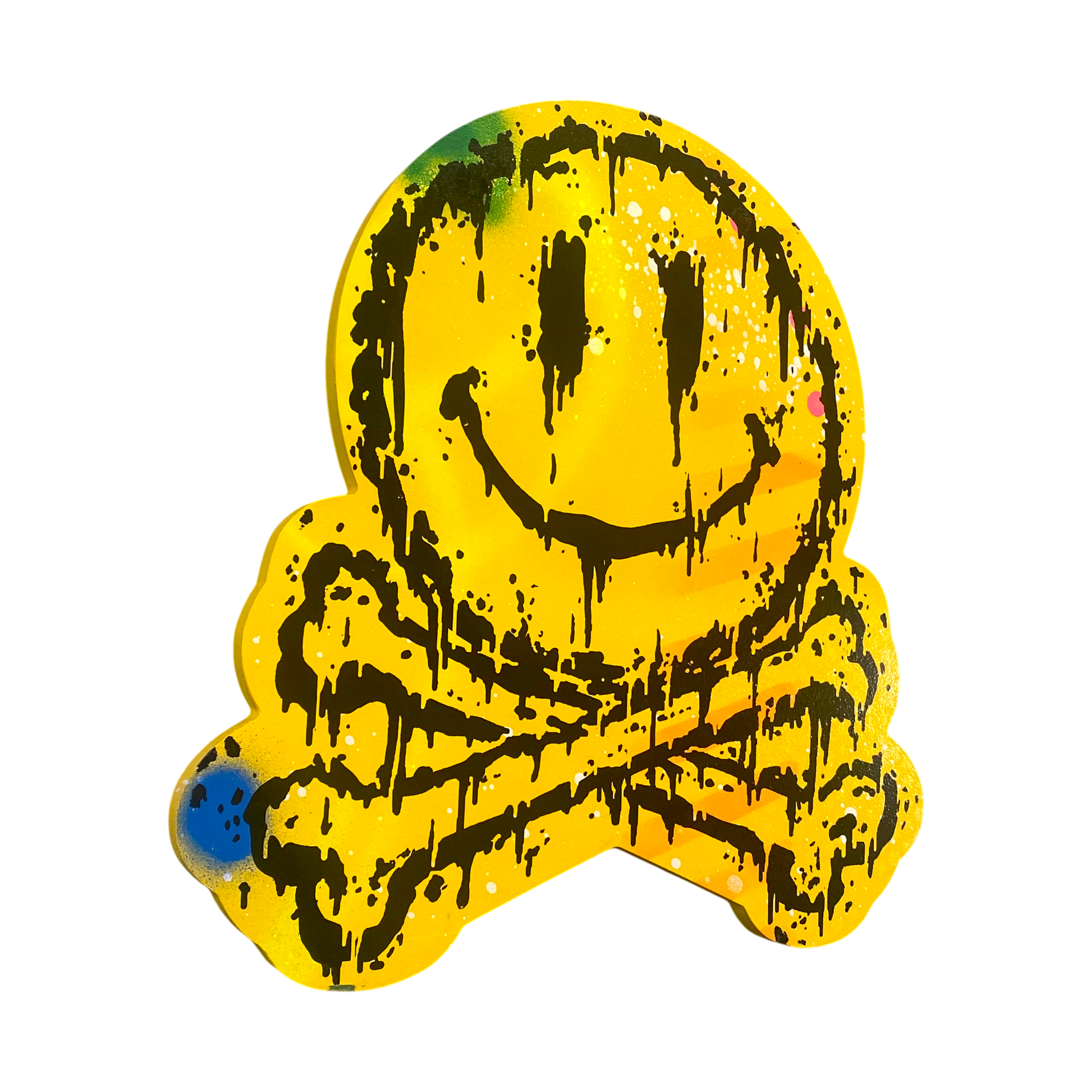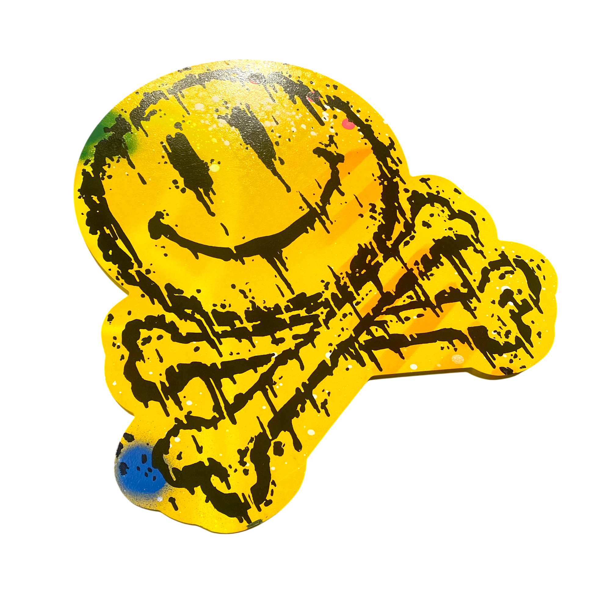 Some of RYCA’s most recognisable works include his giant 3D resin-cast smiley faces, busts of hip-hop icons and acid-house themed skate decks. He has frequently collaborated with Fatboy slim and worked with iconic artists such as Stik and PEZ.