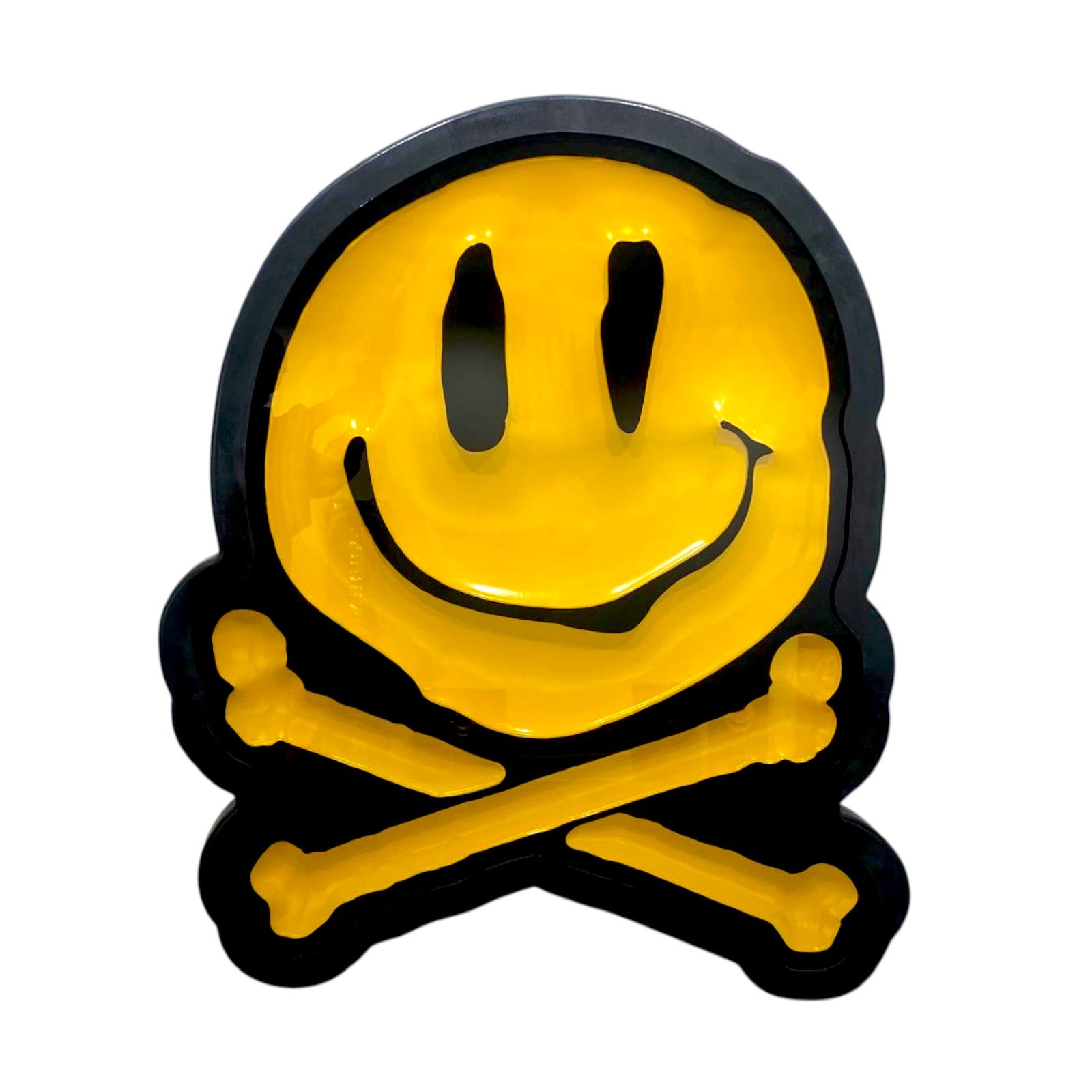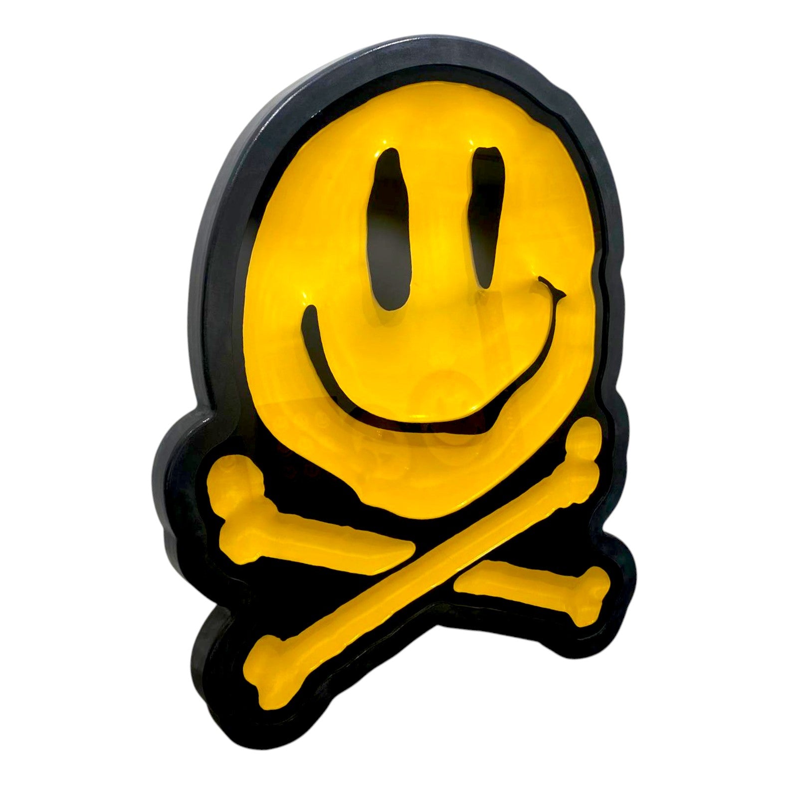 Some of RYCA’s most recognisable works include his giant 3D resin-cast smiley faces, busts of hip-hop icons and acid-house themed skate decks. He has frequently collaborated with Fatboy slim and worked with iconic artists such as Stik and PEZ.