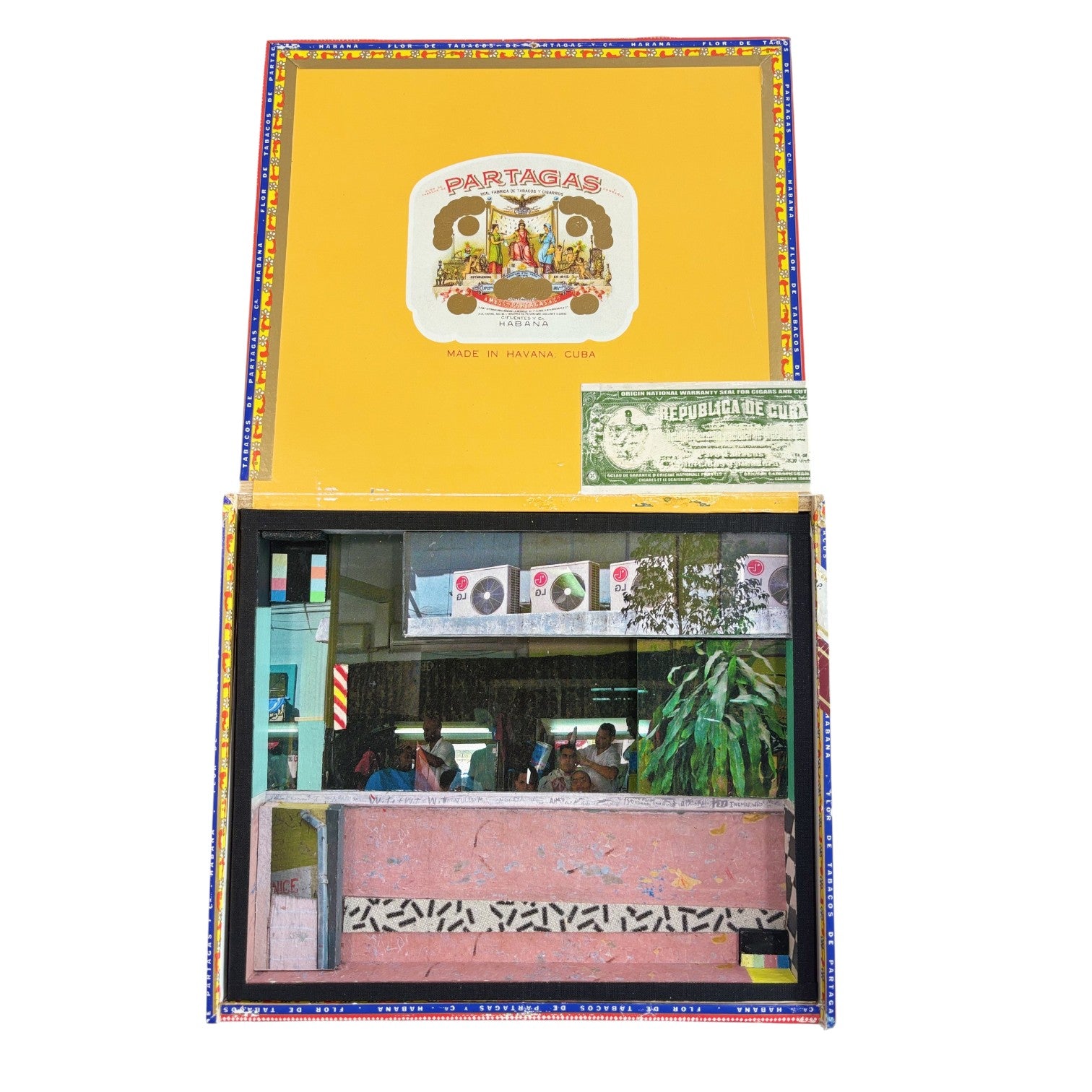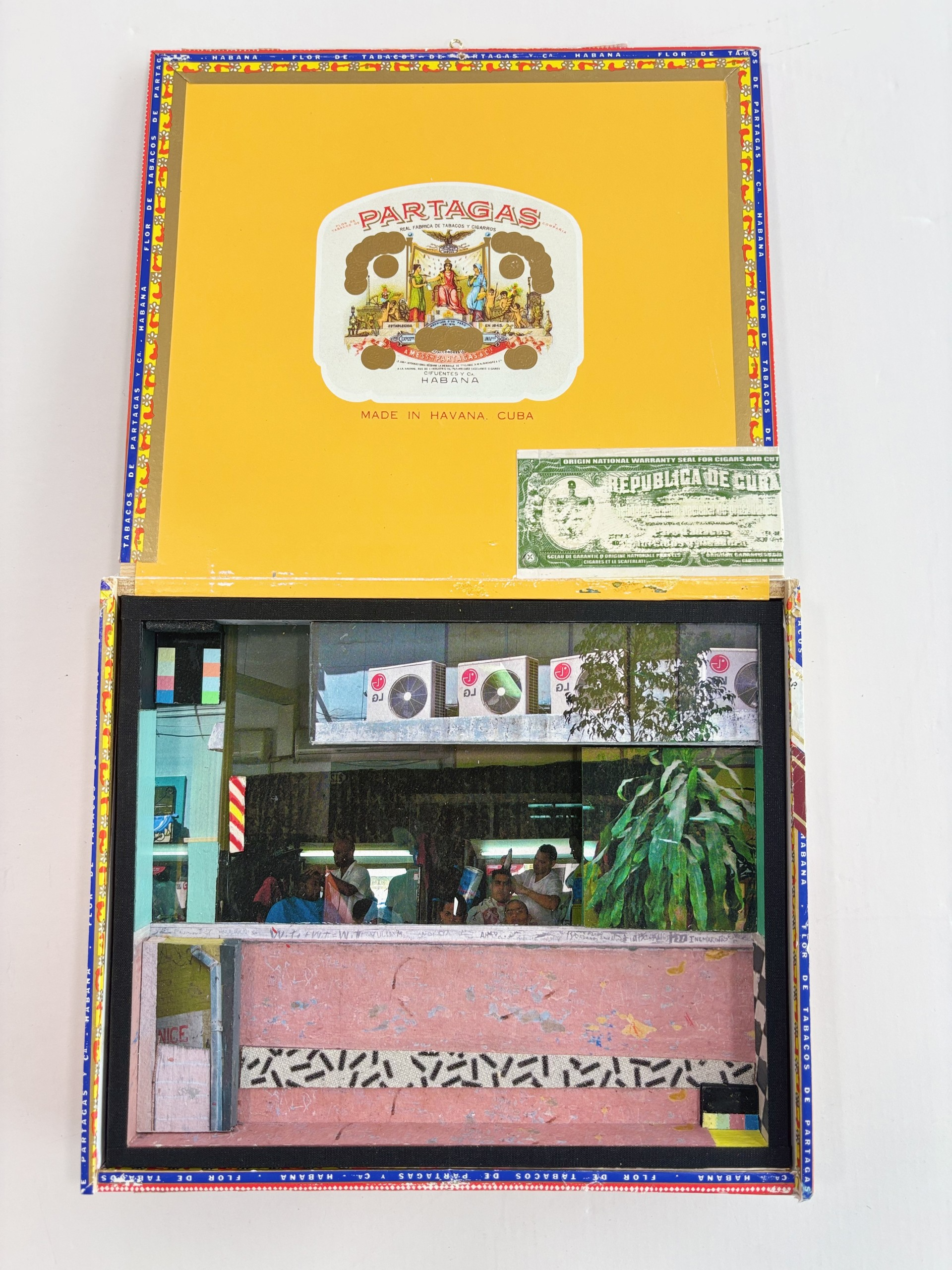- Photography and Mixed media Collage in cigar box with anti reflect glass