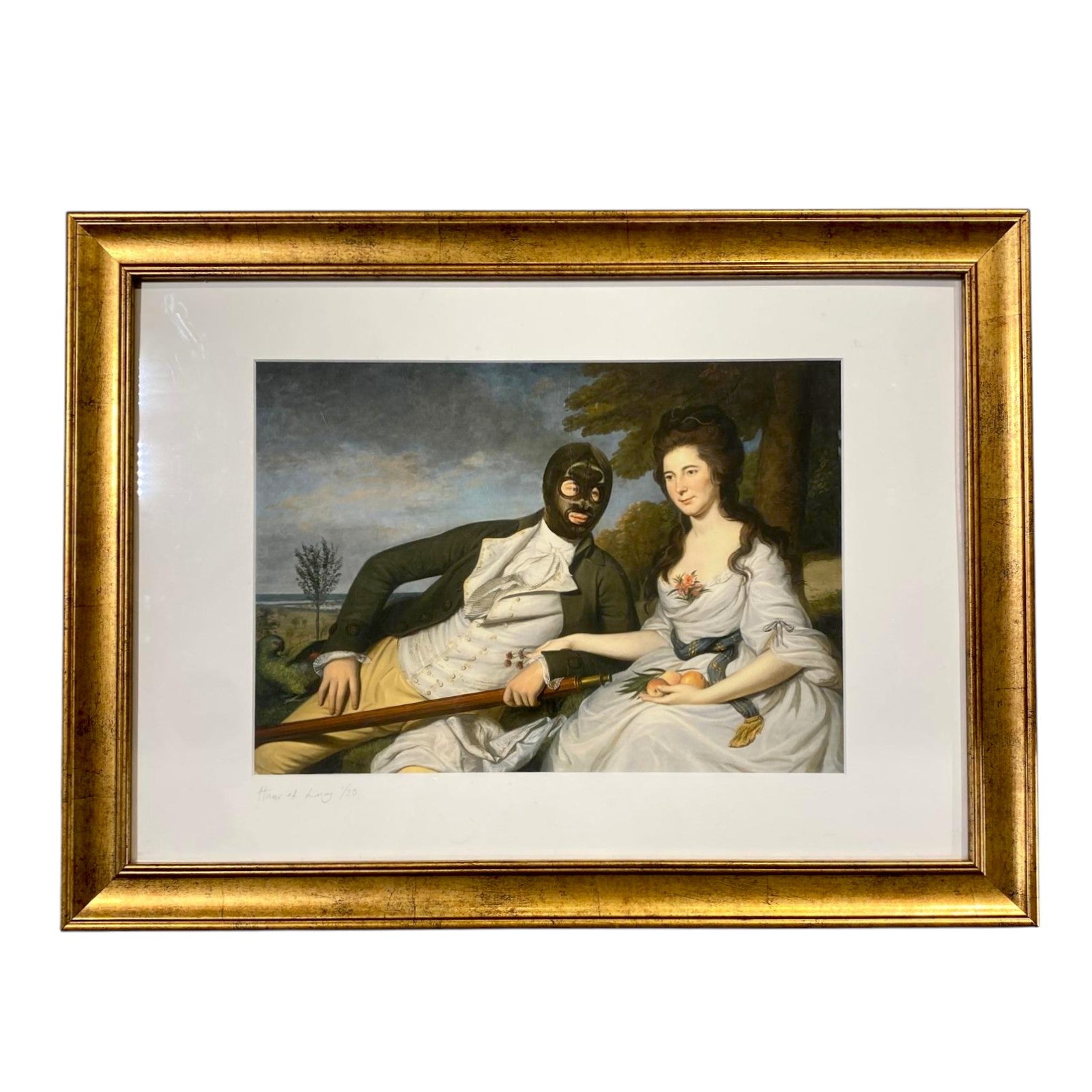 - Framed in gold antique frame with mount