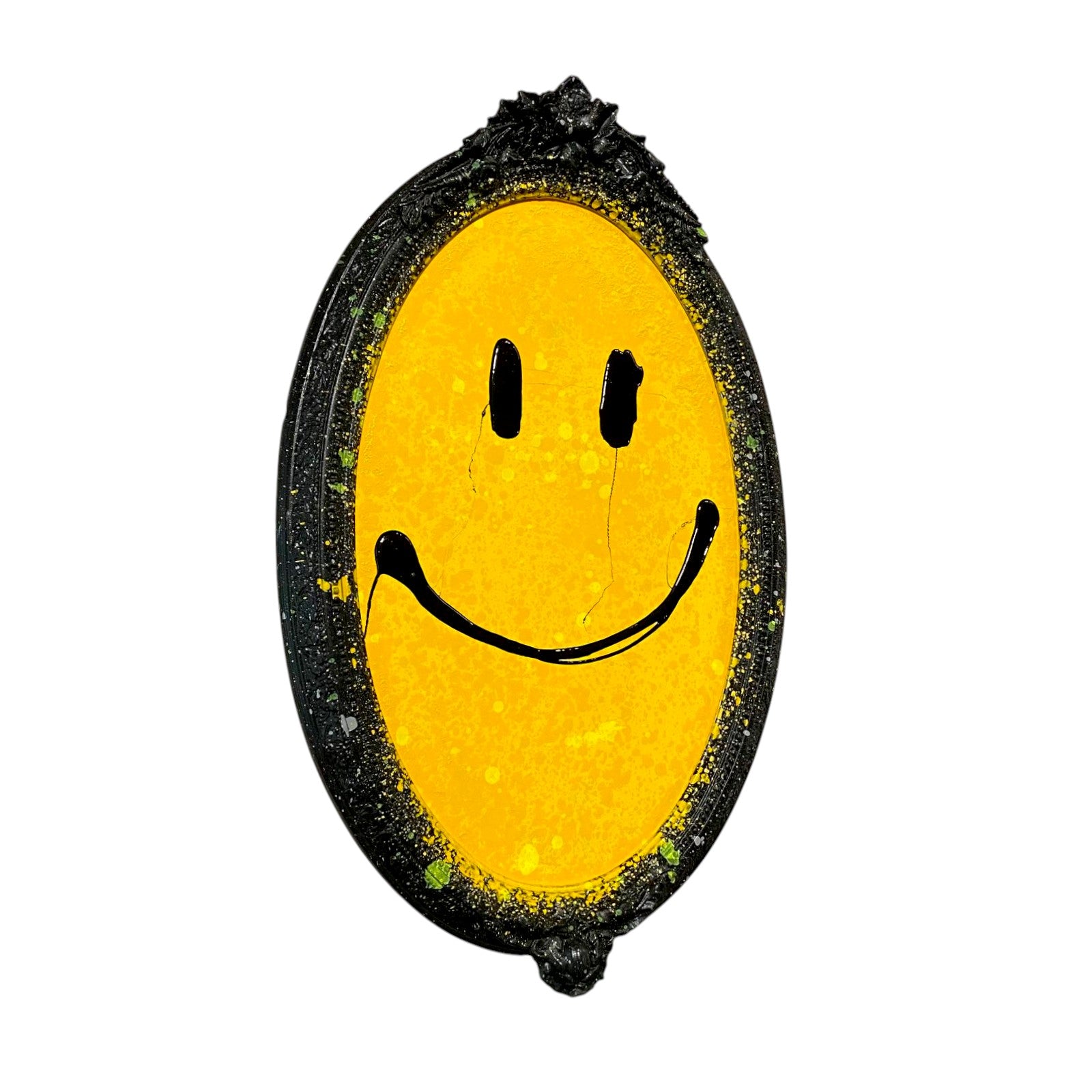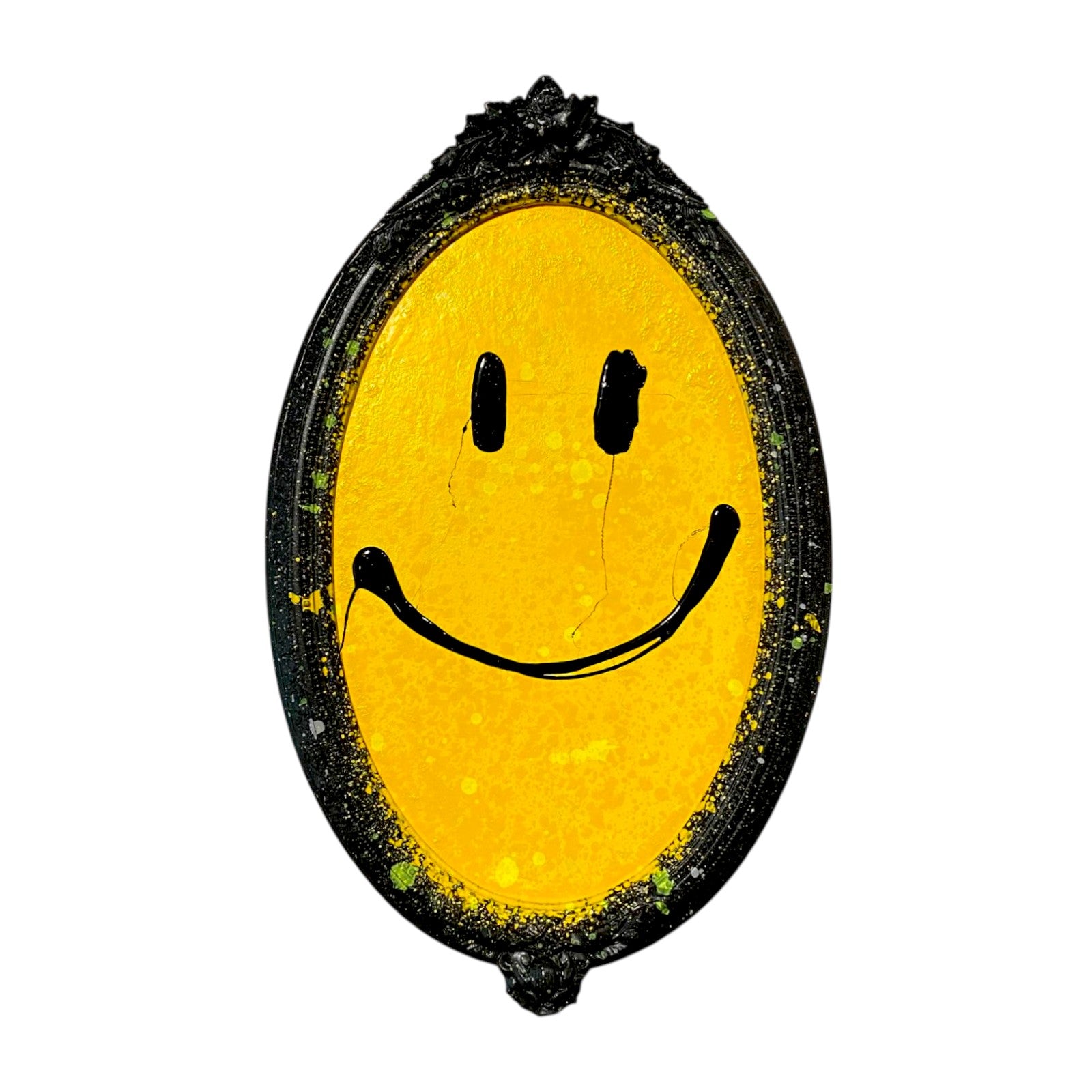 - Acrylic, spray paint and resin on wood in vintage frame