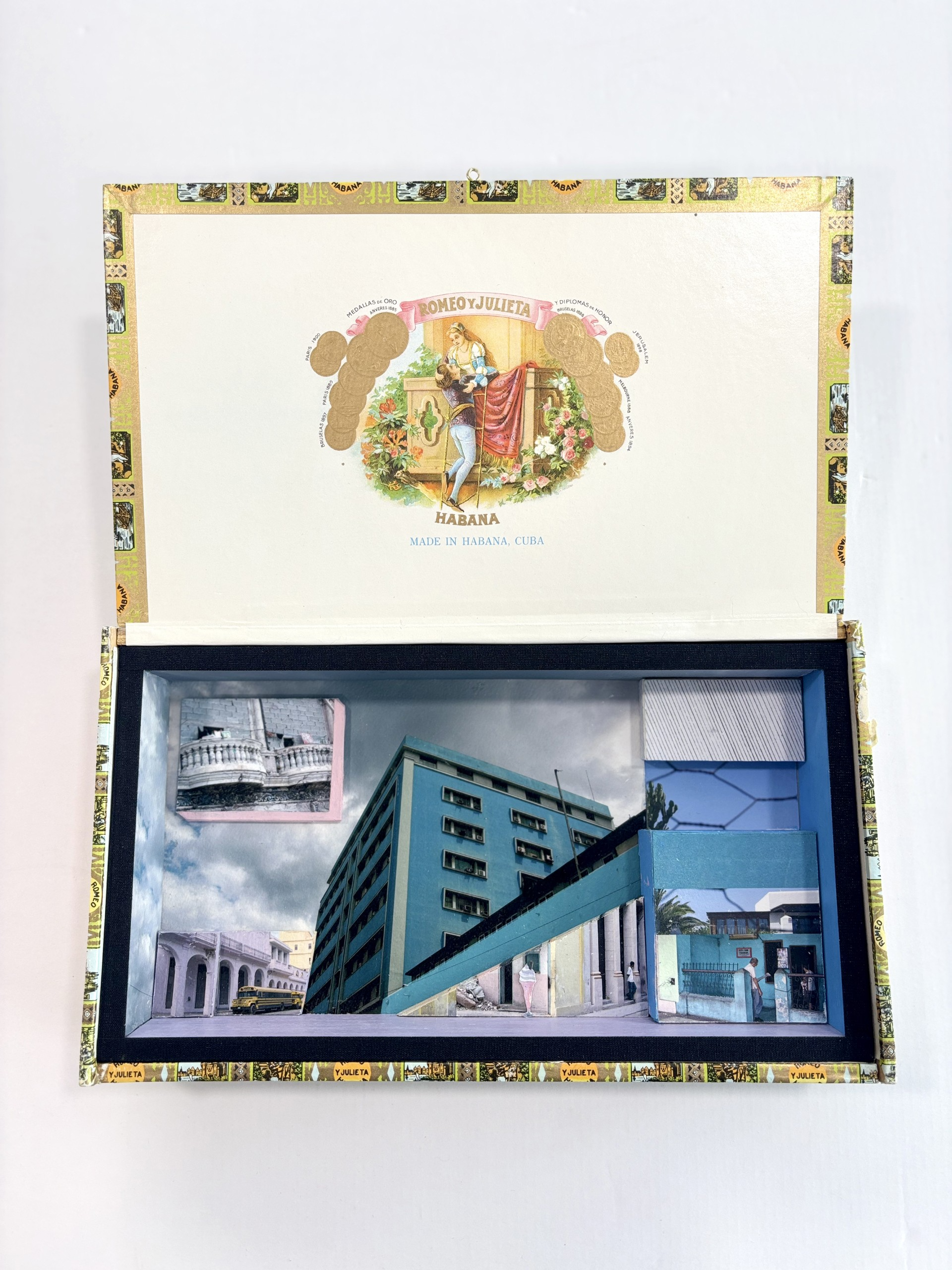 - Photography and Mixed media Collage in cigar box with anti reflect glass