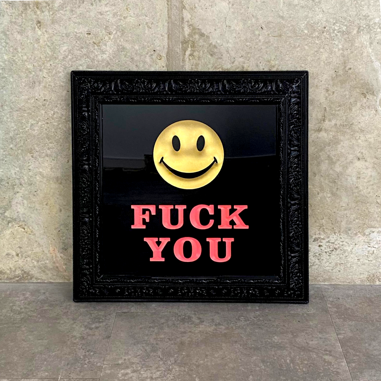 Some of RYCA’s most recognisable works include his giant 3D resin-cast smiley faces, busts of hip-hop icons and acid-house themed skate decks. He has frequently collaborated with Fatboy slim and worked with iconic artists such as Stik and PEZ.