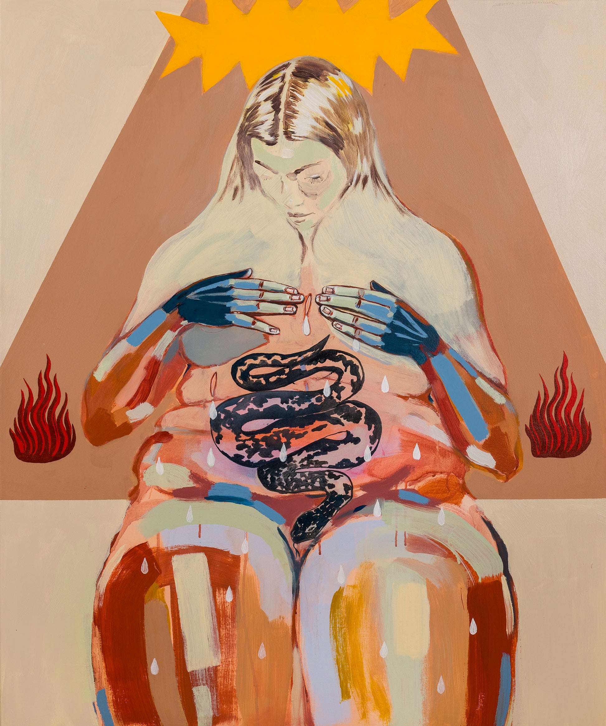 Marcelina Amelia (b. 1989) is a multidisciplinary artist born in Częstochowa, Poland, and based in Brighton, UK. Her practice spans painting, print, textile, photography, installation, video, and performance. Drawing from her Polish heritage, Marcelina explores themes of migration, motherhood, mental health, feminism, spirituality, personal rituals, dreams, and the complexities of the human experience. Her work blends folklore with contemporary narratives, childhood memories with emotional rawness, and sacred symbols with a deep sensitivity to the cycles of life and nature.