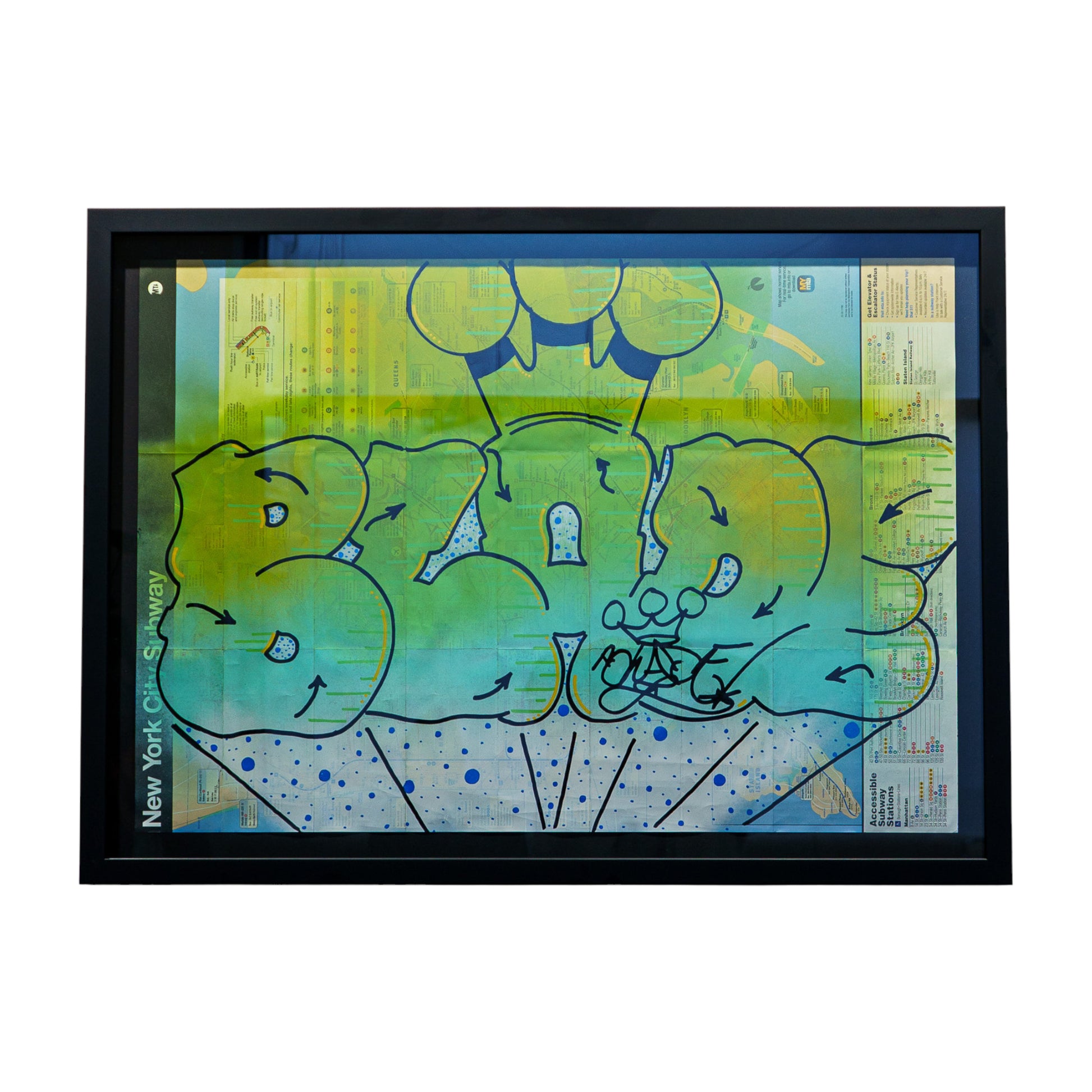 BLADE, born in the Bronx as Steven Ogburn, began painting graffiti in 1972. He was known for his whole-cars and has painted more than 5,000 trains in his career. His “Mainstreams” painting was done in spray paint and marker on canvas in 1990 as a response to other artists moving away from traditional graffiti lettering.