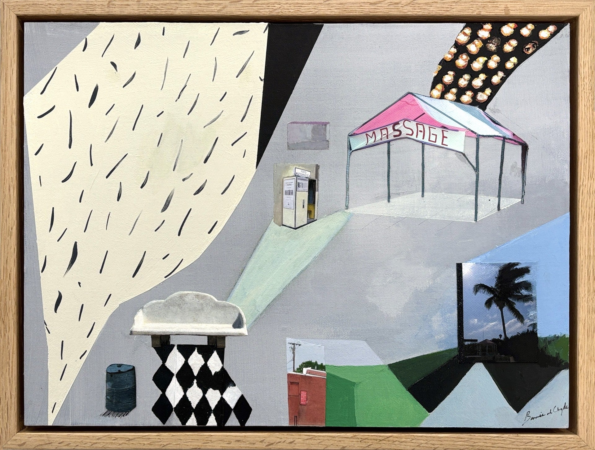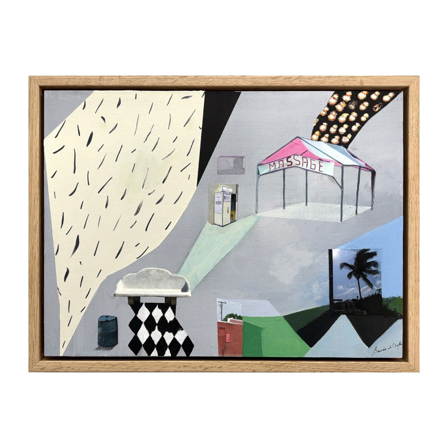 Bonnie and Clyde is a contemporary British artist, working primarily in collage, photography and print. Crossing medium and type, Bonnie and Clyde’s work takes the form of mixed media originals on paper, wood and canvas as well as 3D pieces and limited edition screen-prints. Taking inspiration from music, film, nostalgic iconography and urban spaces, Bonnie and Clyde’s work interweaves themes of the current socio-political climate with emotional and more personal experiences. Travel plays a huge part in shaping her art, and as each image is distorted, cut and layered, Bonnie and Clyde creates bizarre and far off places that still retain an element of familiarity.