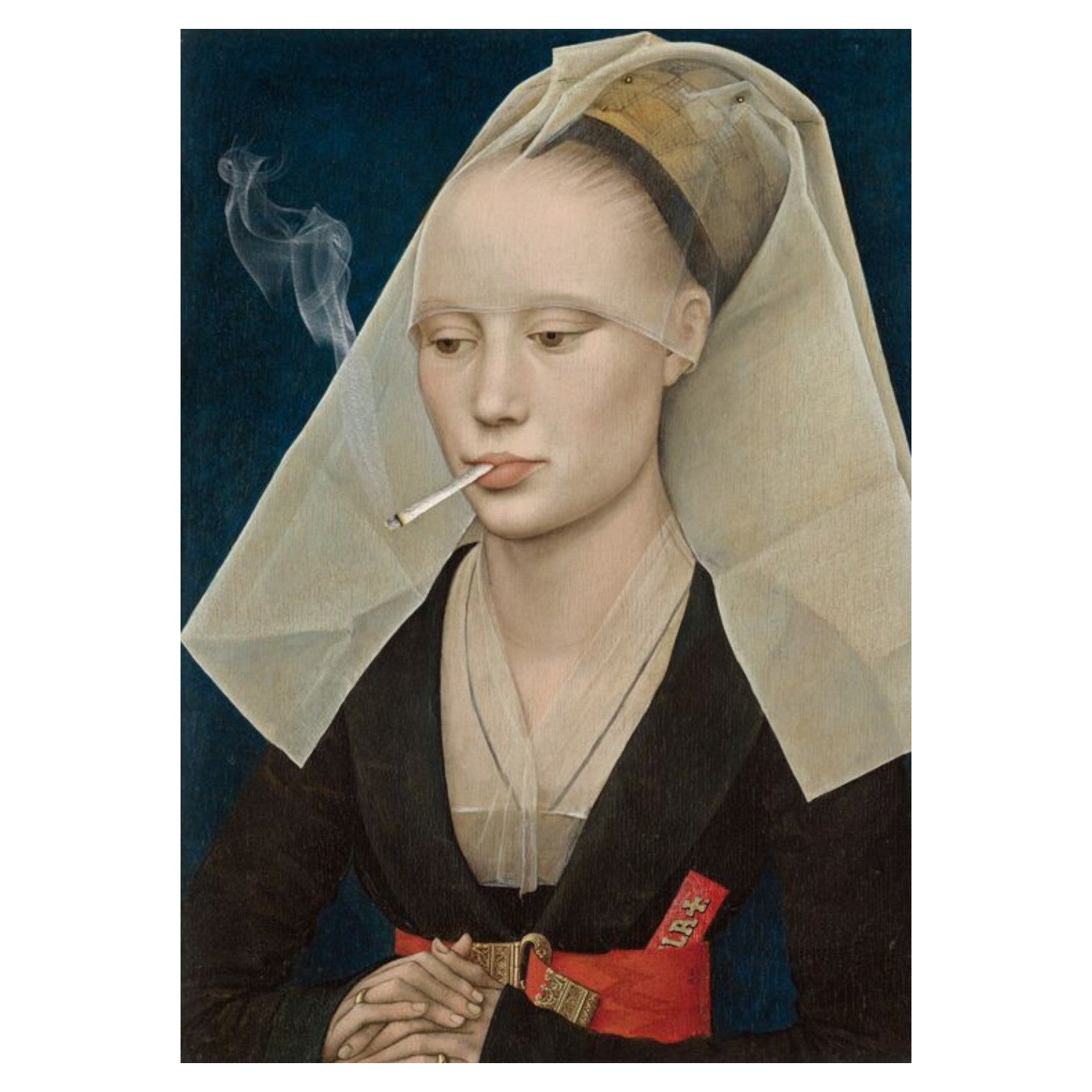 Specialising in the re-appropriation of classic British ephemera, her work juxtaposes traditional imagery with humorous motifs and branding often seeking to create a playful yet impactful dialogue on consumerism, masculinity and the banality of modern life.
