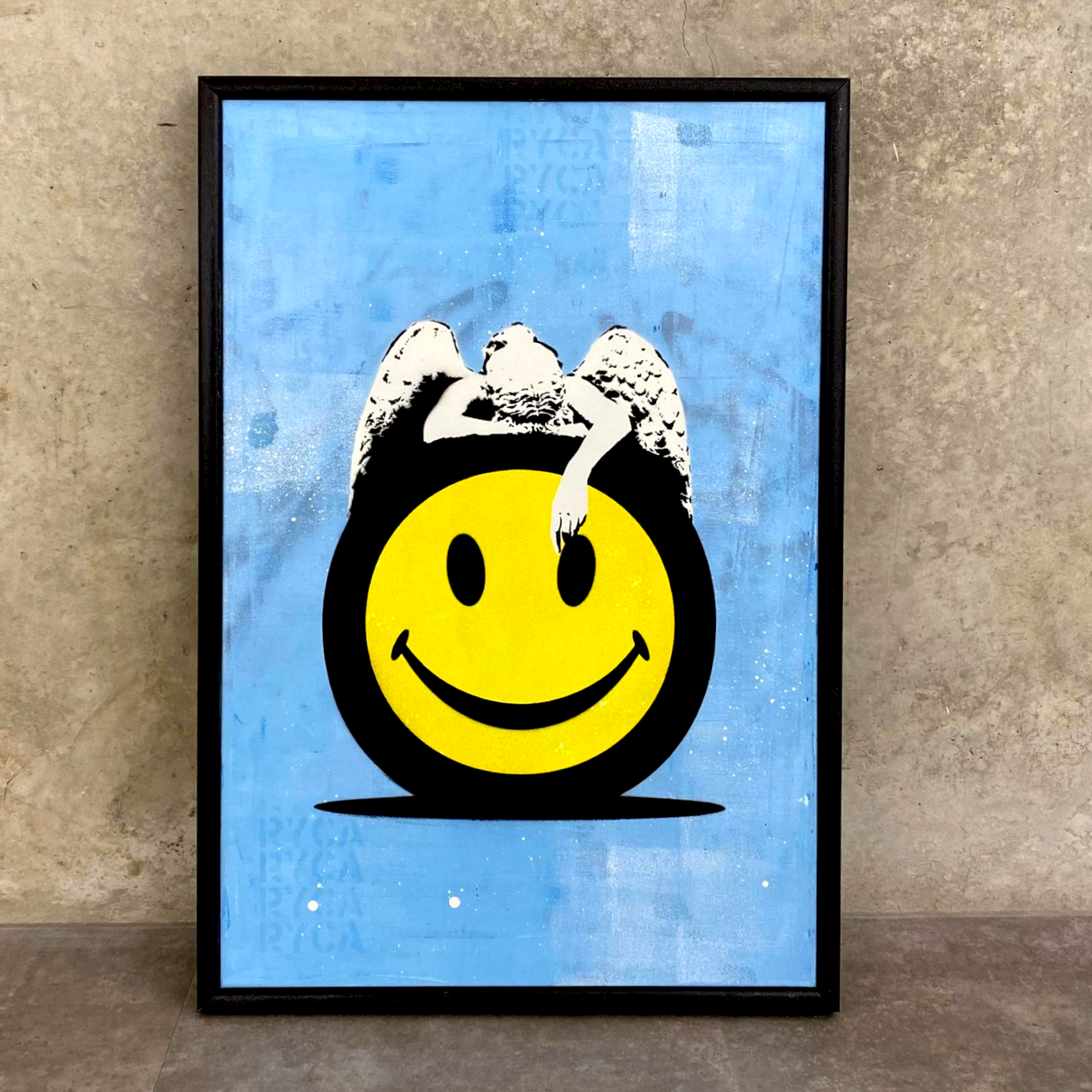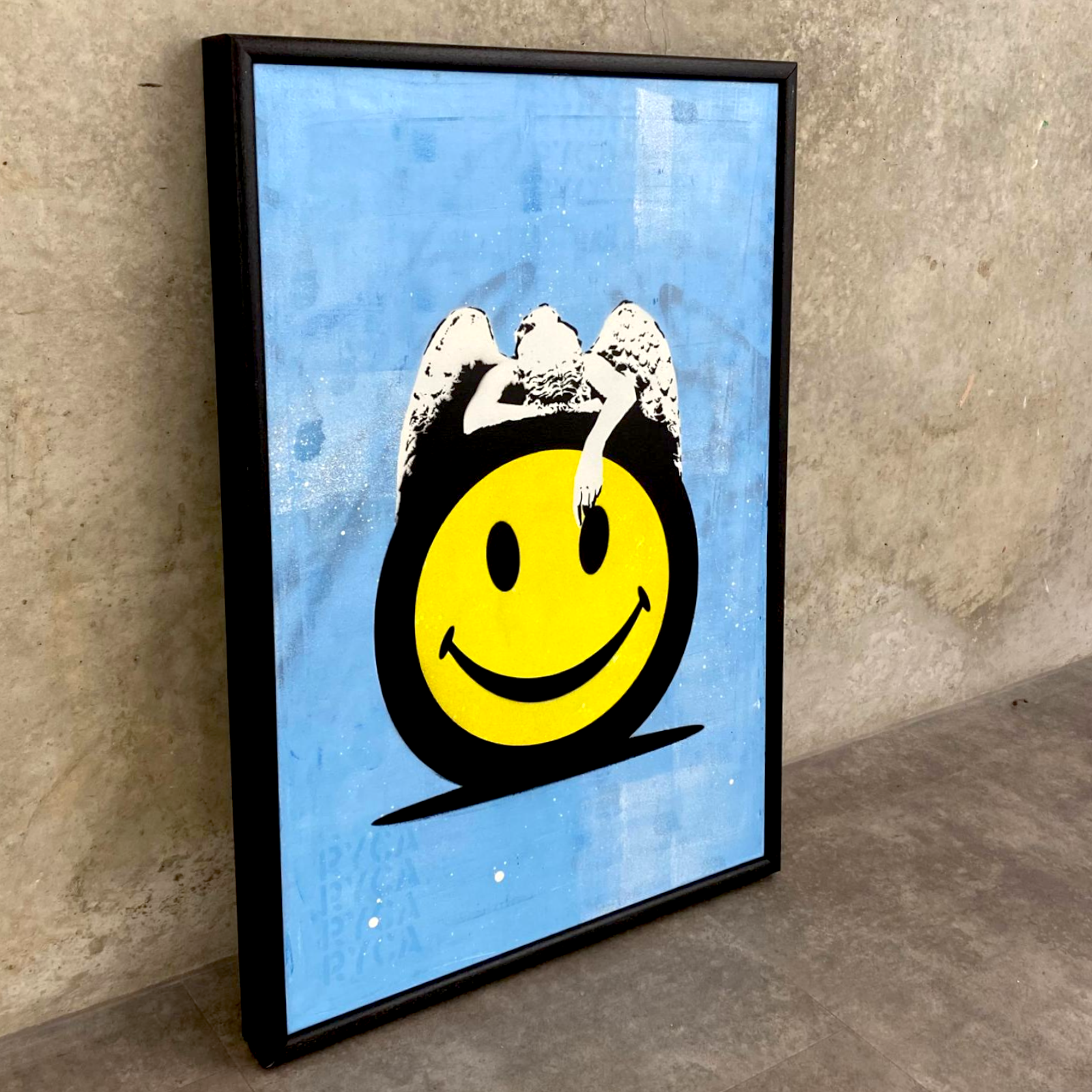 Some of RYCA’s most recognisable works include his giant 3D resin-cast smiley faces, busts of hip-hop icons and acid-house themed skate decks. He has frequently collaborated with Fatboy slim and worked with iconic artists such as Stik and PEZ.