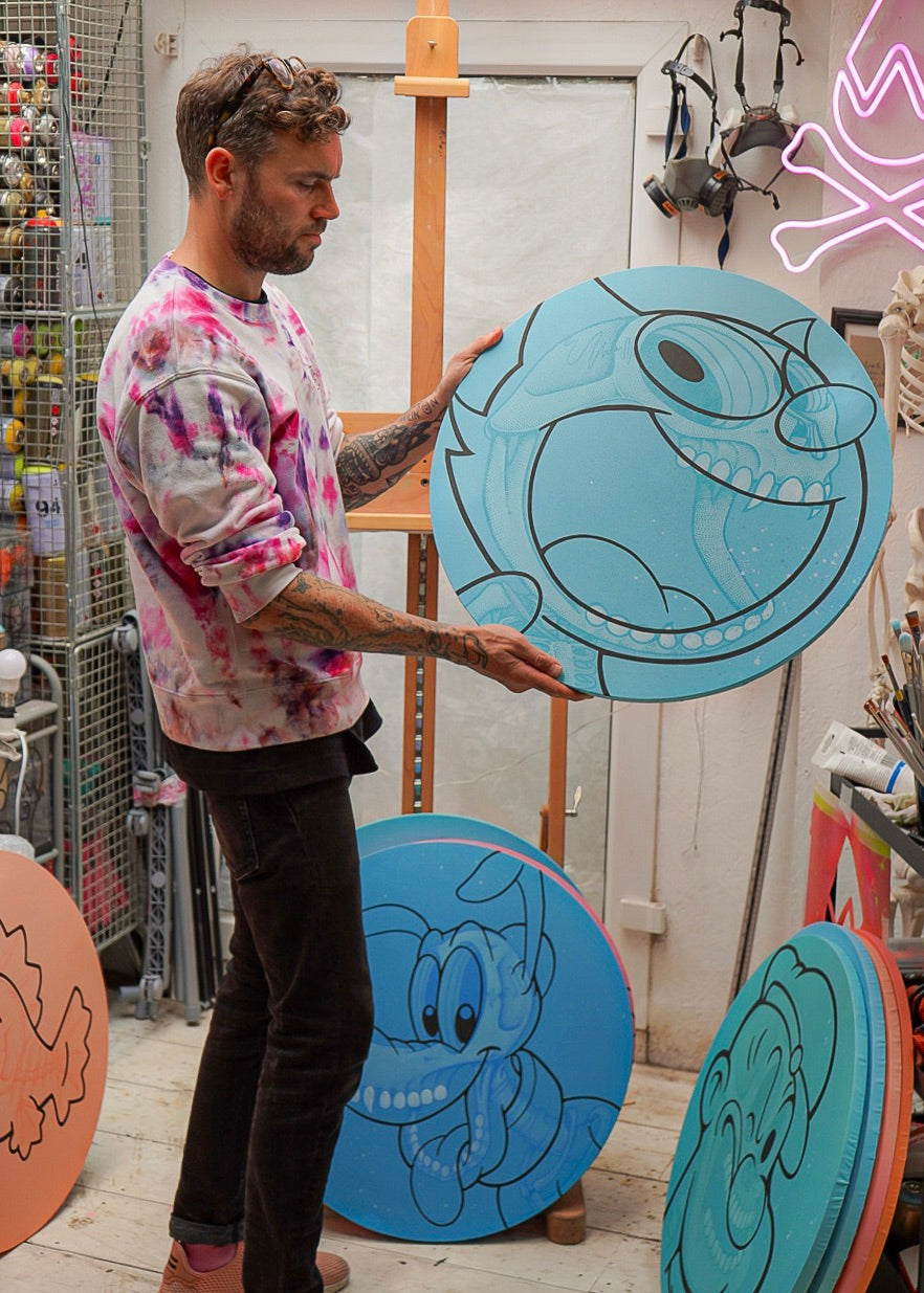 Will Blood is a Brighton based artist best known for his stylised depictions of nostalgic cartoon characters and pop-culture.